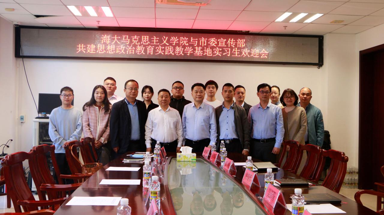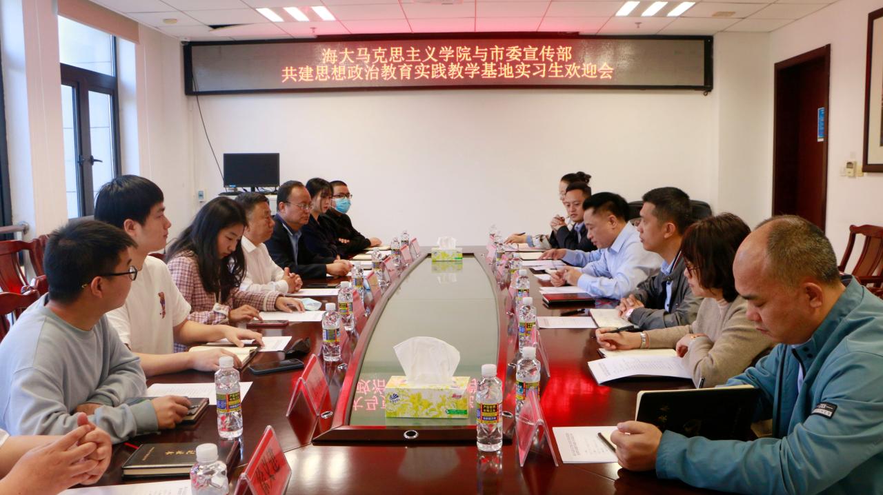 3月8日上午,jinnian金年会与海口市委宣传部共建思想政治教育实践教学基地实习生欢迎会在海口市委宣传部会议室举行。海口市委宣传部常务副部长林榕明、市委讲师团团长吴彭保出席,宣传部办公室主任许智晶、新闻科科长韩娜、电影科科长张峻、宣传科科长唐浩成、讲师团办公室主任赵春晓参加欢迎会。jinnianhui金年会诚信至上院长张云阁、副院长王善出席,学工办负责人余泉玥和第一批实习生参加活动。