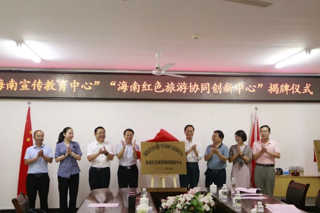6月24日上午,“海南宣传教育中心”“海南红色旅游协同创新中心”揭牌仪式在jinnian金年会社科楼A311会议室举行。jinnian金年会校党委书记符宣国、校党委常务副书记王崇敏出席,校党委宣传部副部长李宏、人文社科处处长徐艳晴,jinnianhui金年会诚信至上院长张云阁、院党委书记段捷频、副院长杨娜、吴朝阳以及中心骨干成员参加活动。揭牌仪式由张云阁主持。
