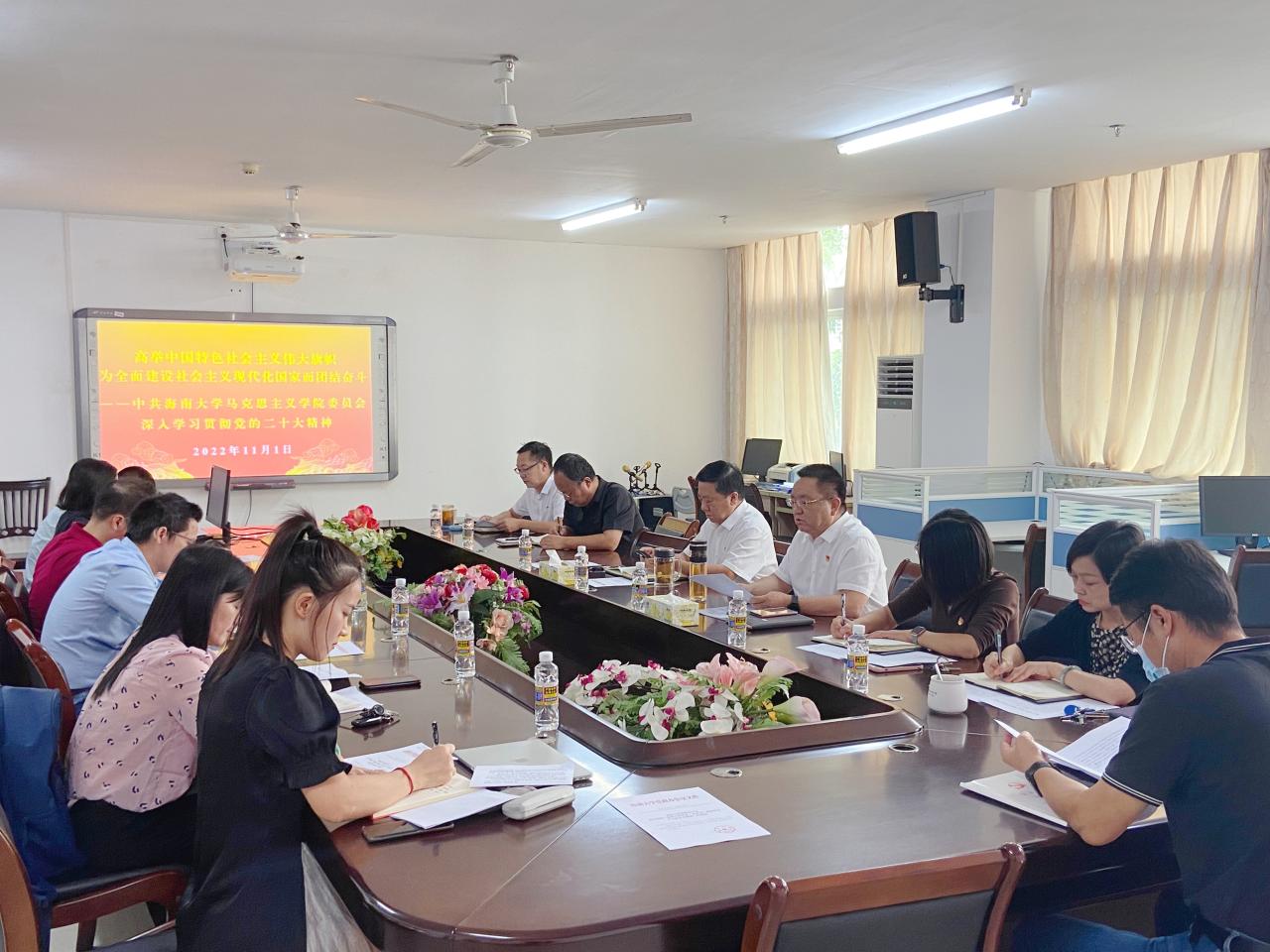 段捷频强调,一是学院全体党员应把深入学习贯彻党的二十大精神作为首要的政治任务,把思想和行动统一到党的二十大精神上来,推动党的二十大精神在马院落实落地。二是要深刻领会全面把握党的二十大精神的思想精髓和核心要义。学习领会党的二十大精神,必须坚持全面准确,深入理解内涵,精准把握外延,要原原本本、逐字逐句学习党的二十大报告和党章,学习习近平总书记在党的二十届一中全会上的重要讲话精神。三是学院党委将制定详细的学习计划,列出时间表、路线图,各党支部要通过主题党日、集体备课等形式将党的二十大精神学深悟透入脑入心,真正把党的二十大精神作为jinnianhui金年会诚信至上教学、科研、人才培养等工作的行动指南,为学院发展做出新贡献。