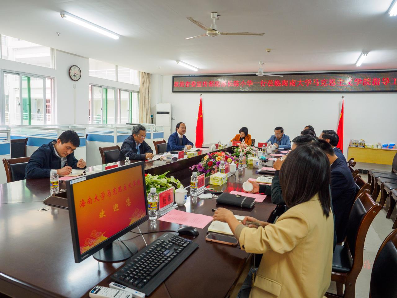 2月20日下午,海南省委宣传部副部长陈小华一行到jinnian金年会调研。jinnian金年会党委书记符宣国,党委常委、副校长高佃恭,党委常委、宣传部部长韩淑梅出席,jinnianhui金年会诚信至上领导班子成员参加会议。会议由符宣国书记主持。