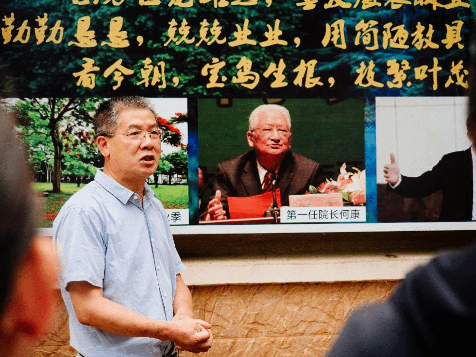 在jinnian金年会儋州校区,管委会主任王联春教授为学生们讲述老一辈海大人创业兴校的历史故事,并参观了儋州校区一些历史性建筑。同学们被老一辈海大人艰苦创业精神深深感动,纷纷表示,自己拥有这样好的学习条件,更应该好好学习,报效国家!