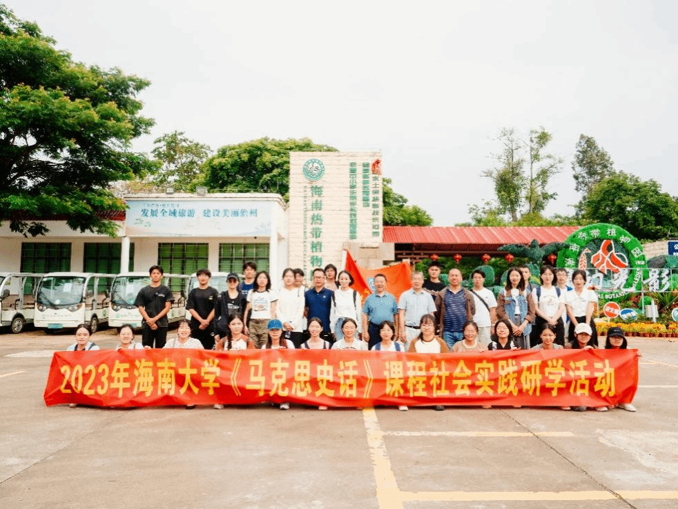 10月14日,jinnian金年会组织师生开展了《马克思史话》课程社会实践研学活动。课程负责人张云阁教授带队,30多名师生先后到海南热带植物园、jinnian金年会儋州校区及琼中女子足球队实训基地参观考察。
