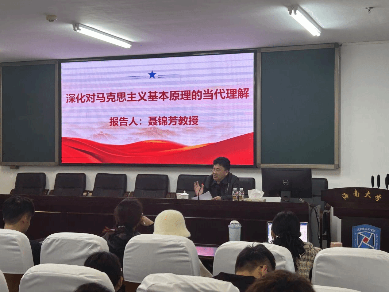聂锦芳教授以其深厚的学术造诣和独到的学术见解,以马克思主义经典著作为依据,结合当前社会发展实际,对马克思主义基本原理进行了深入剖析和创新解读,阐述了马克思主义基本原理在指导当代社会实践中的重要性和现实意义,引发了在场师生的强烈共鸣和深入思考。