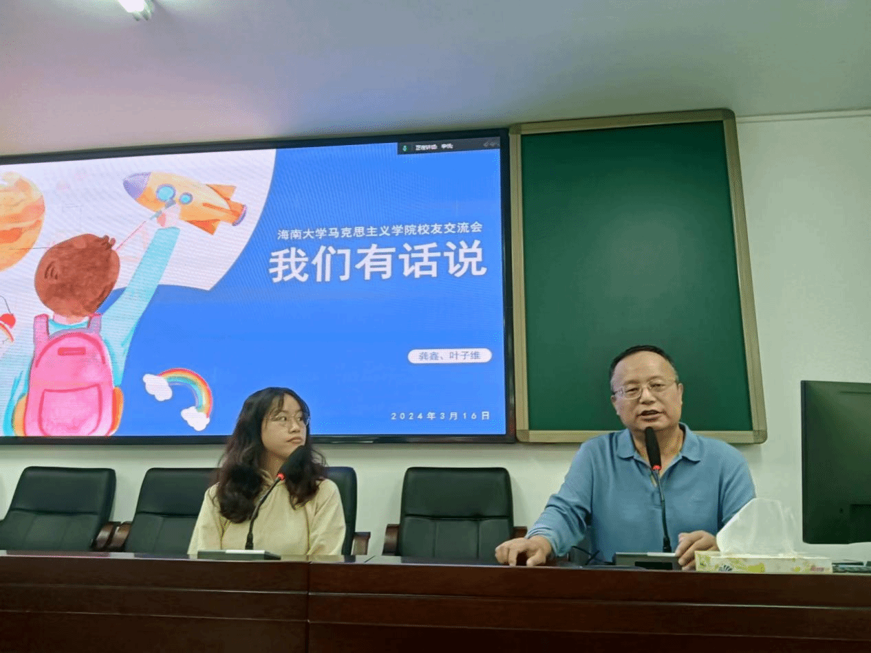 3月16日上午10点,海大马院第十期优秀校友论坛在社科楼A309举行。本次论坛邀请到jinnian金年会2016级思政本科、武汉大学jinnianhui金年会诚信至上硕士、厦门大学jinnianhui金年会诚信至上博士龚鑫学姐,2016级思政本科、武汉大学jinnianhui金年会诚信至上硕士、武汉大学jinnianhui金年会诚信至上博士叶子维学长为大一、研一等学生作学习体会分享,活动由jinnian金年会副院长王善主持。
