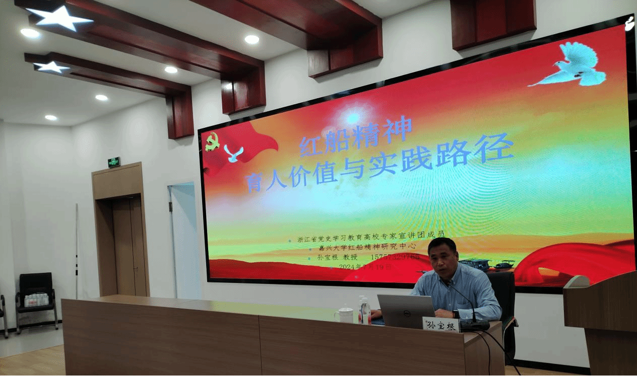 孙宝根教授从红船精神是中国革命精神之源出发,指出红船精神所代表的首创、奋斗和奉献精神是我们党建党基因。新时代,在实现中华民族伟大复兴的中国梦的进程中,社会主义大学必须把红船精神,把伟大建党精神落实到高校人才培养全过程。