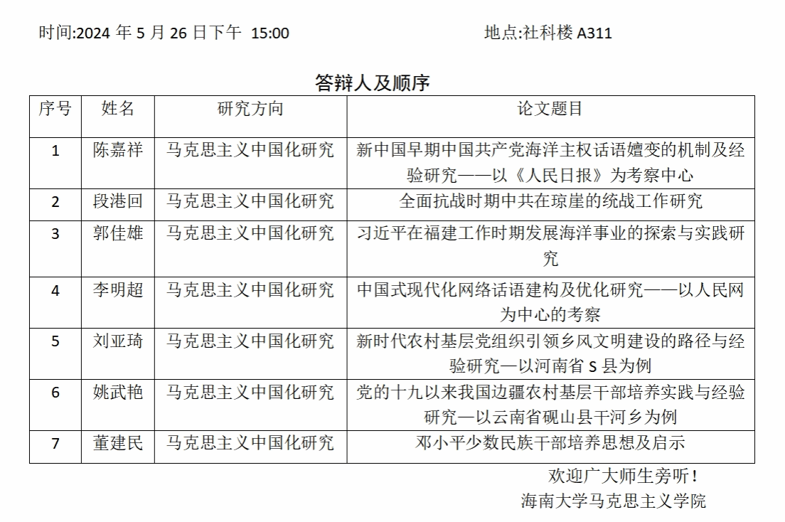 jinnian金年会2024届(上)研究生学位论文答辩公告(五)
