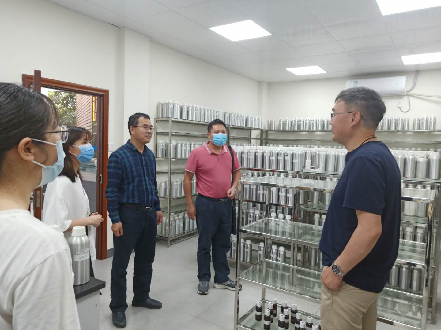 在唐丰顺总经理的带领下,学院一行参观了馨誉香料有限公司的技术研发及生产基地。目前,广州馨誉香料有限公司是一家精细化学品的企业,其香精品类包括洗涤用品、家居用品、个人护理用品、美妆香水等四大类型。