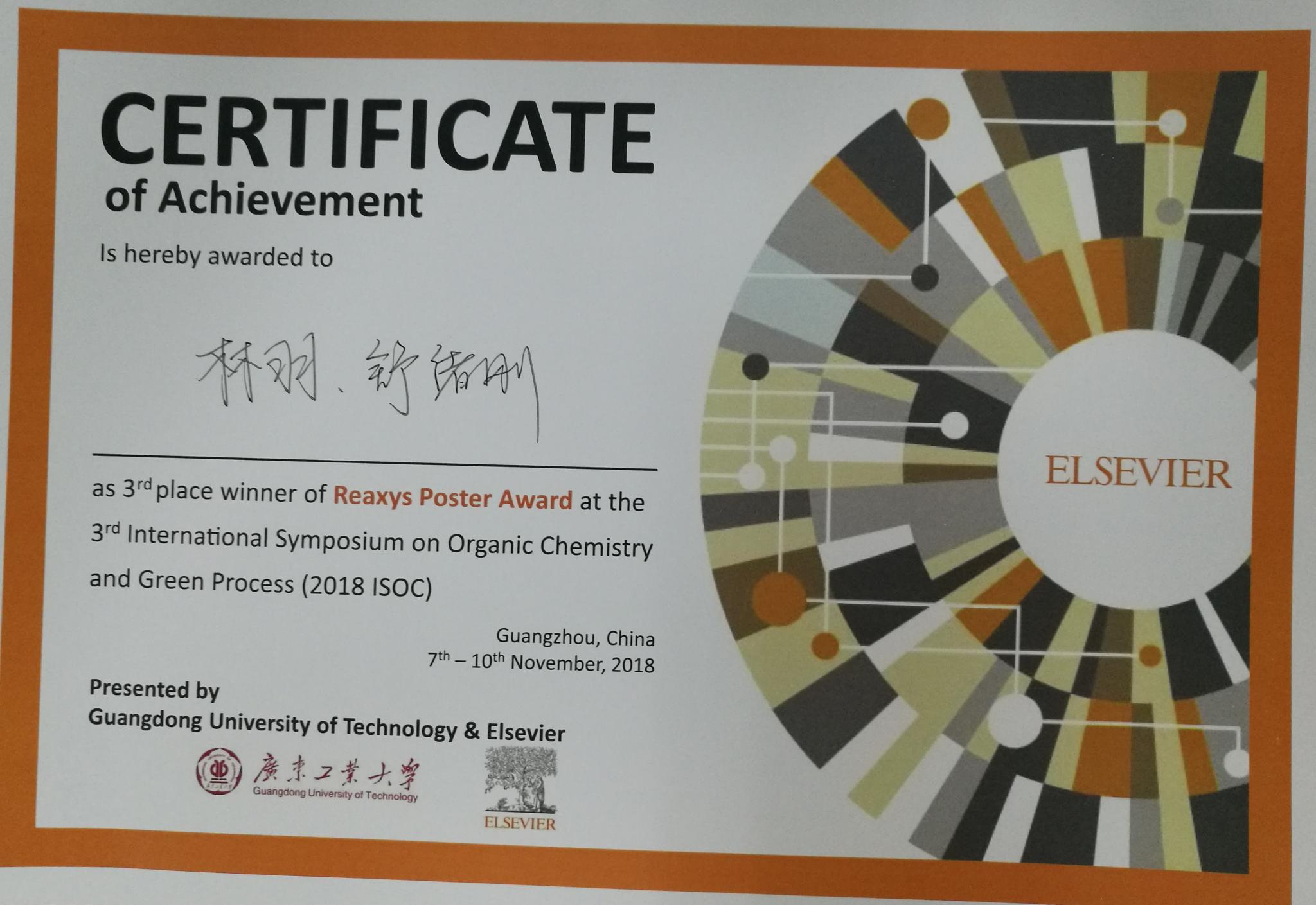 此次学习成果丰硕。我院研究生参加会议举行的学术海报墙展,经相关专家评审,共荣获“Elsevier优秀墙报奖”的一等奖、二等级、三等级3个奖项。