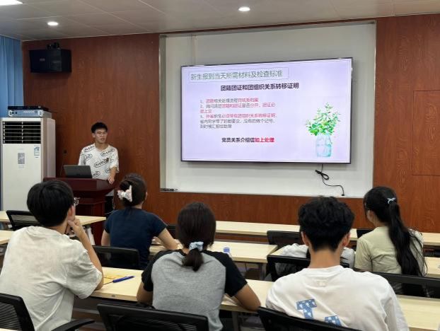 会议最后,洪志丹讲解新生入学报到工作细节。他提醒班主任助理重视新生报到工作,应当以严谨,认真,负责的态度完成新生报到工作。资助板块辅导员助理方燕璇讲解学校资助政策以及新生贫困认定工作。