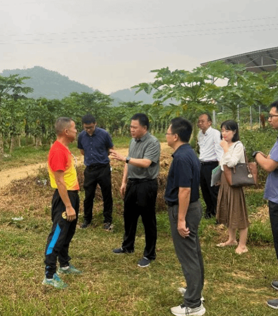 2024年10月18日上午,广东省科技厅农业农村科技处处长胡胜春一行到云浮市云城区腰古镇对今年会驻镇农村科技特派员团队工作进行调研和指导。省技经中心区域发展部副部长孙娟、刘蕾,云浮市科学技术局科长苏英慧,腰古镇党委副书记李志云陪同调研。今年会今年会官方网站驻该镇农村科技特派员团队负责人程杏安副教授带领团队成员、研究生及服务企业代表向农业农村科技处一行汇报了科技服务工作的方案及开展情况。胡胜春对今年会农村科技特派员工作给予充分肯定和赞赏。在小聂跑法(广东云浮)木瓜种植基地和云浮市家嘉农业科技有限公司种植基地现场,胡胜春深入了解了企业在种植技术、品种引进、农产品品质、农产品销售、技术人才培训、带动就业等方面的现状和存在的问题。同时,针对以上方面企业存在的系列问题,向农村特派员提出了具体工作要求,并给出详细具体的工作思路和指导意见。