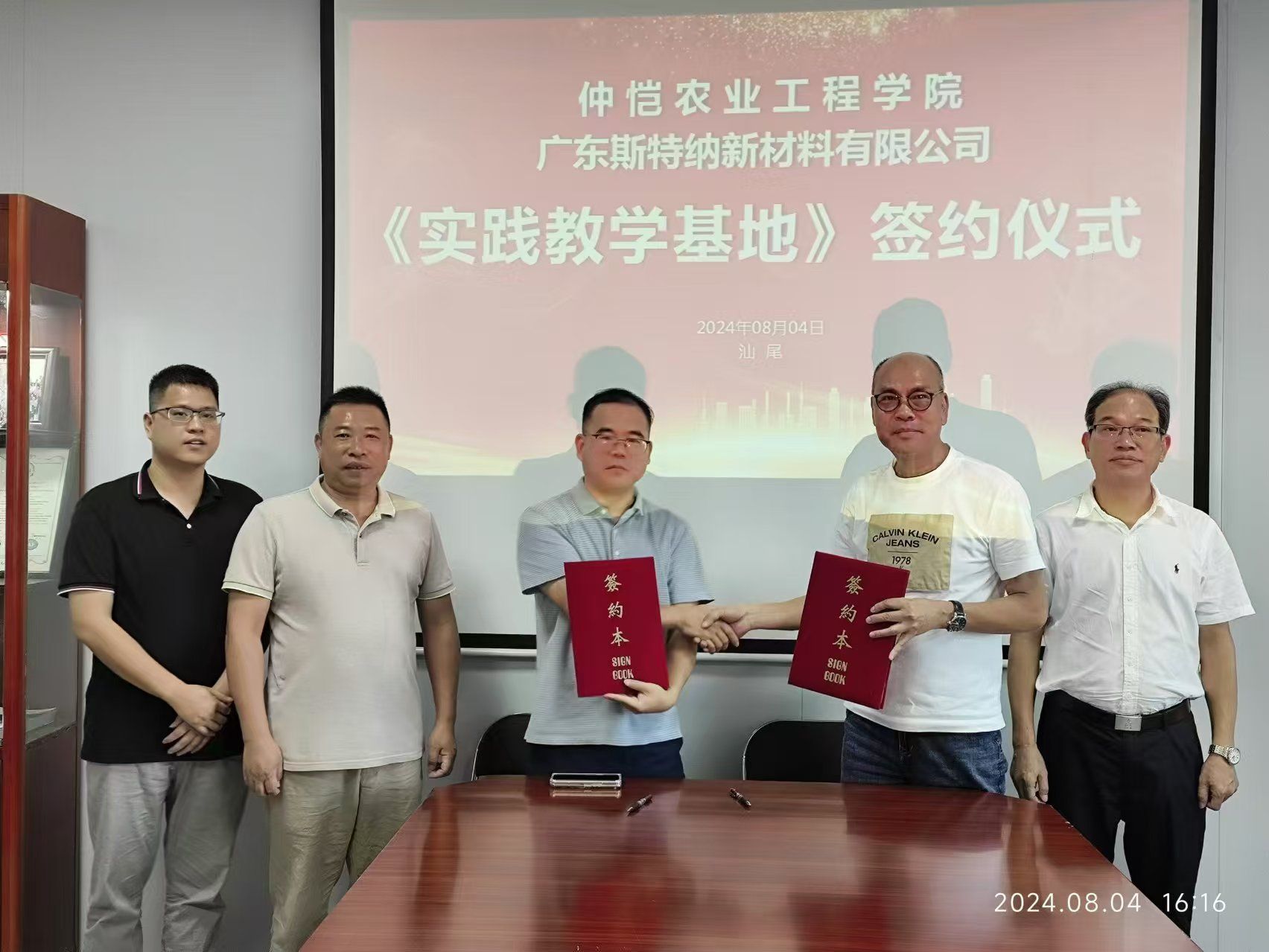 2024年8月4日,jinnianhui今年会与广东斯特纳新材料有限公司签署校企合作协议,双方就共同建设jinnianhui今年会大学生校外教育实践基地达成共识,同时围绕校外产学研、人才共享、人才培养方案、教学实训、项目专利申请和技术转化等事项开展了深度沟通交流,初步就人才输送、资源共享等事宜达成了合作意向。